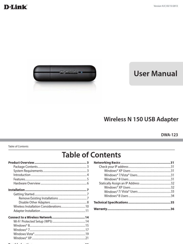 Wa123a1 Wireless N 150 Usb Adapter User Manual Dwa 123 D Link