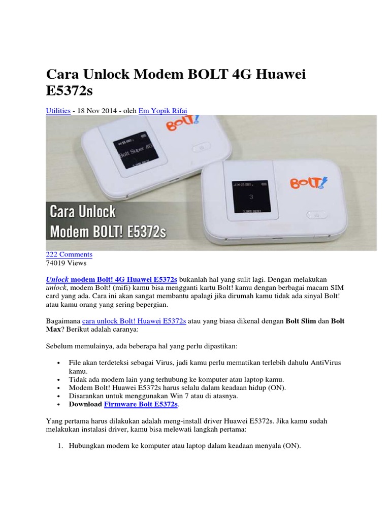 Cara Unlock Modem Bolt 4g Huawei E5372s