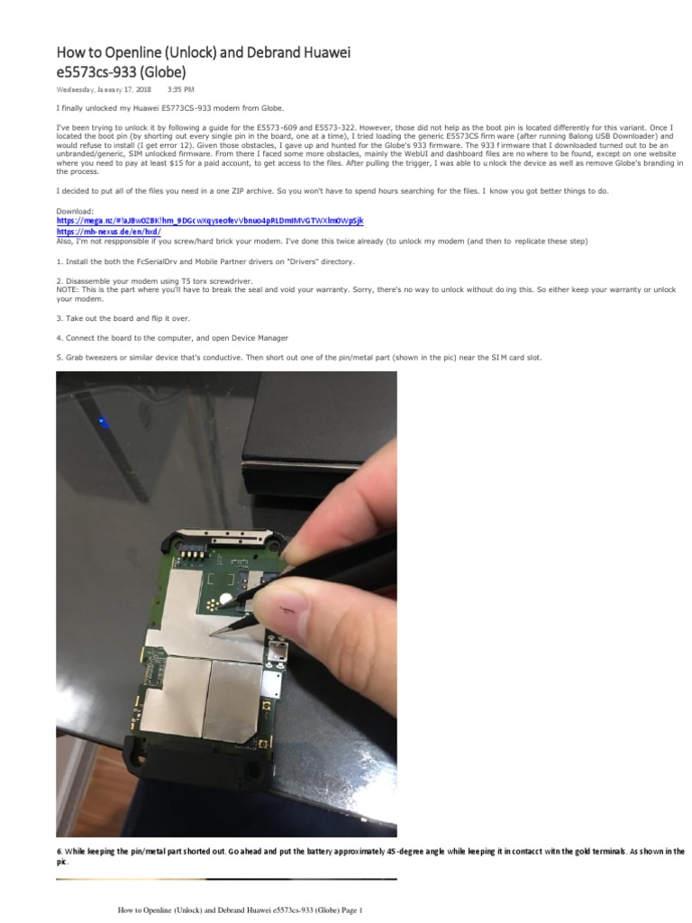 How To Openline Unlock And Debrand Huawei E5573cs 933 Globe